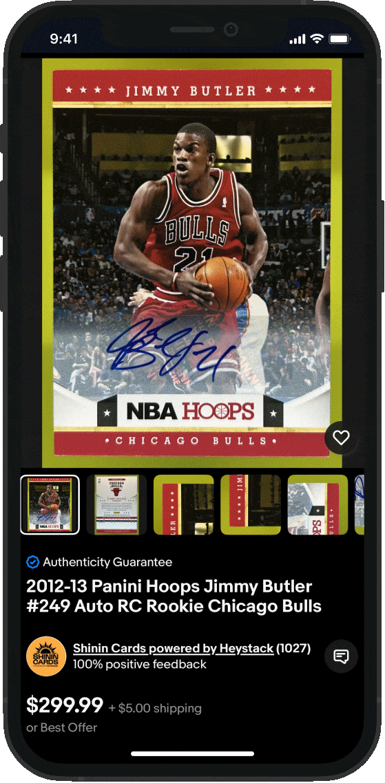 Heystack is a neck-strain free zone. Our software finds the correct orientation for your cards and automatically rotates the image so your buyers can inspect important details like serial numbers without any head tilting or neck strains.